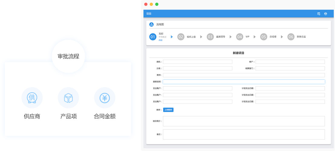 項(xiàng)目報(bào)銷 與項(xiàng)目相關(guān)的交通、差旅、績(jī)效等費(fèi)用報(bào)銷流程申請(qǐng),并自動(dòng)歸集為項(xiàng)目成本;